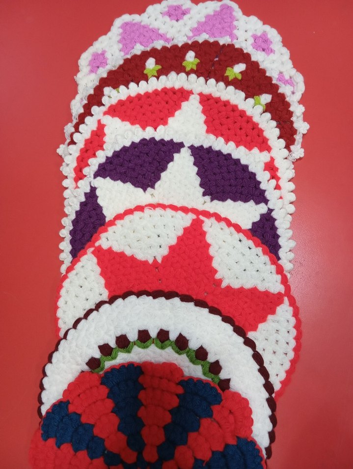 Farklı desenlerde renkli örgü banyo süngerleri, cildi nazikçe temizlemek için uygundur.