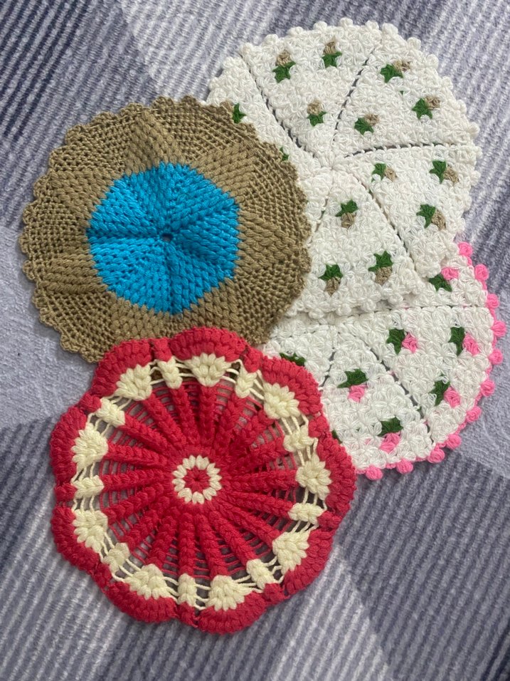 Farklı desenlerde renkli örgü banyo süngerleri, nazik peeling için uygundur.