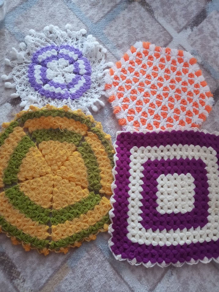 Çeşitli şekil ve desenlerde renkli örgü banyo süngerleri, nazik peeling için uygundur.