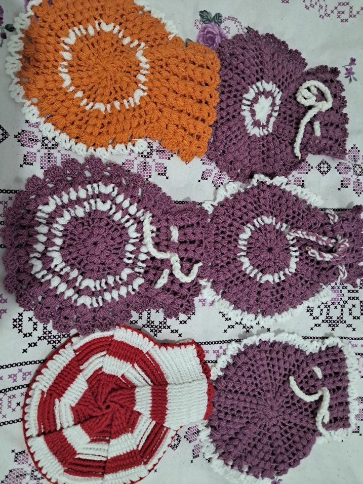 Farklı boyut ve şekillerde renkli örgü banyo süngerleri, nazik temizlik için uygundur. 6 adet lif yeni oruldu6 adet 200