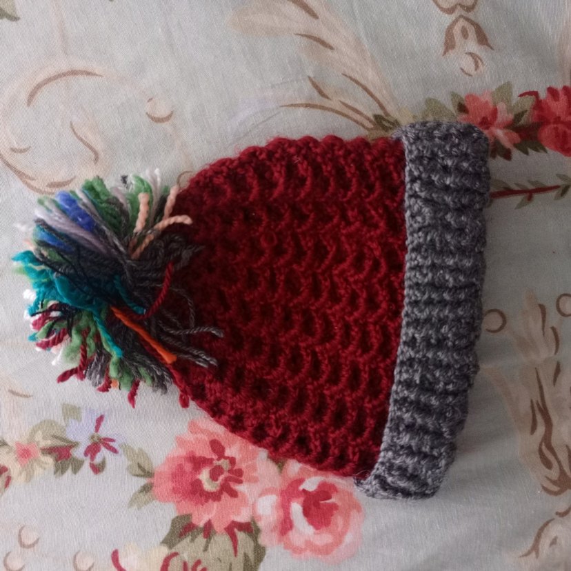 Renkli örgü deseni ve çok renkli ponponu ile sıcak tutan kadın bere, bohem tarzına uygundur. bebek bere 3-6