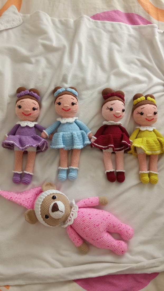 Renkli Örgü Bebek ve Ayıcık Seti