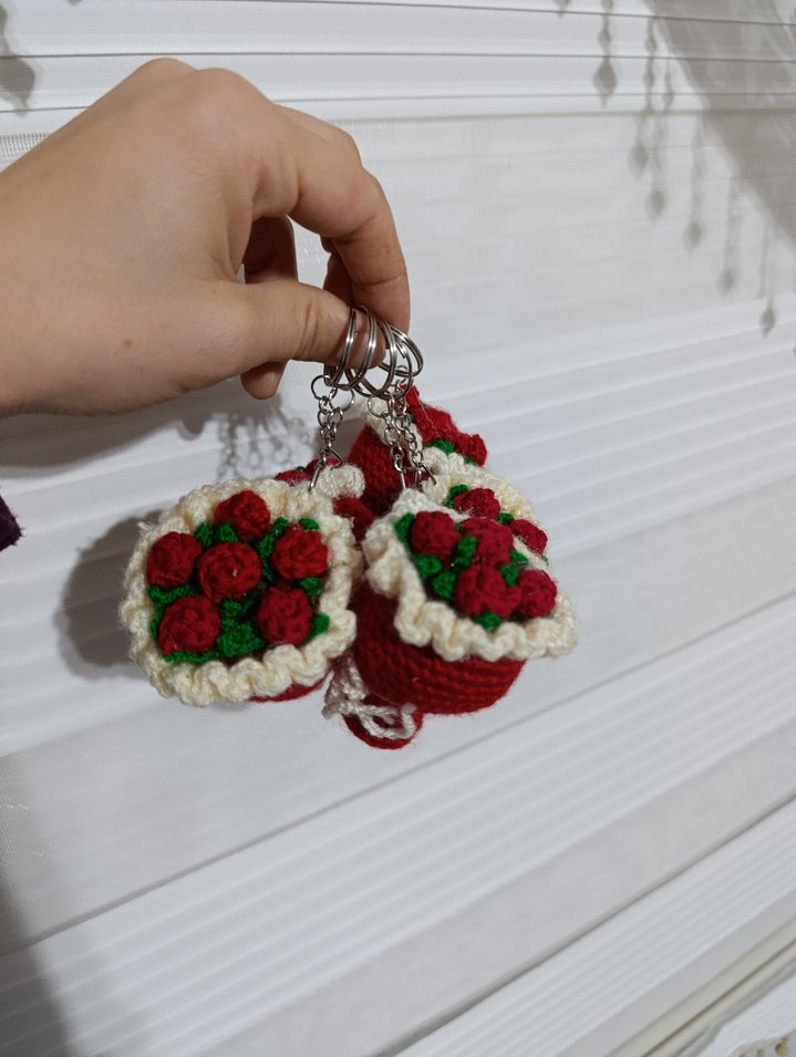 Kırmızı ve yeşil detaylı, rahat bohem tarzda renkli örgü anahtarlık. Anahtarlarınıza retro hippie dokunuş katmak için ideal. istediginiz renkte yapilir