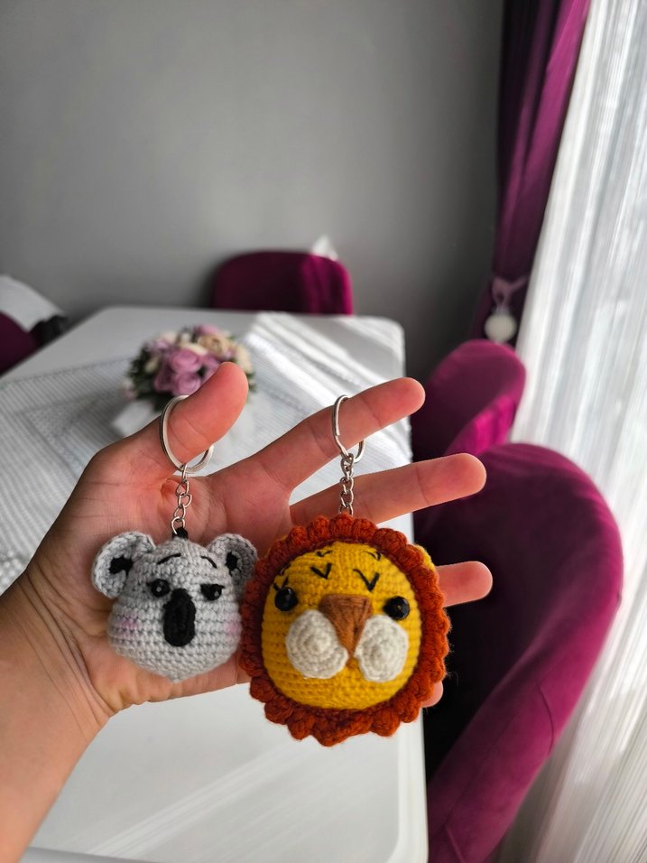 Renkli örgü malzemeden yapılmış, bohem tarzda hayvan figürlü anahtarlık seti, anahtarlarınıza sıcaklık katıyor.