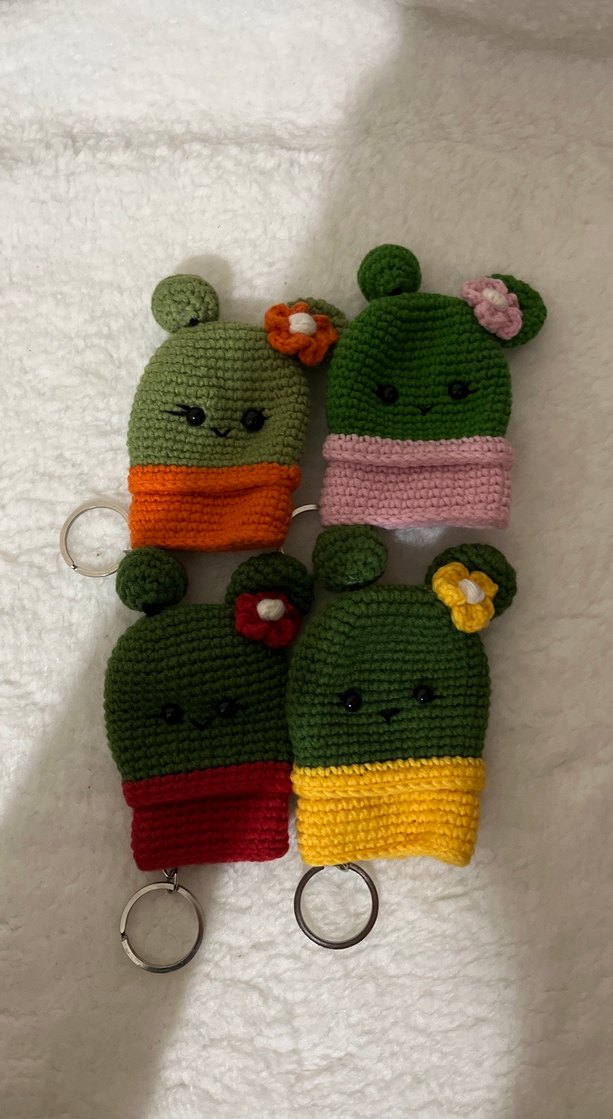 Renkli örgü anahtarlıklar, bohem tarzda ve rahat. Her biri sevimli yüz ve çiçek detayına sahip, retro ve hippie havasında.