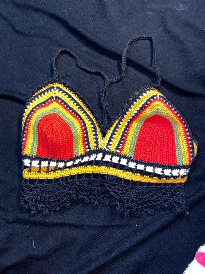 Renkli örgü desene sahip, kısa ve askılı bohem tarzda, vücuda oturan straplez büstiyer. Günlük kullanıma uygun. ayarlanabilir bir üst olduğu için nerdeyse tüm bedenlere olur.
