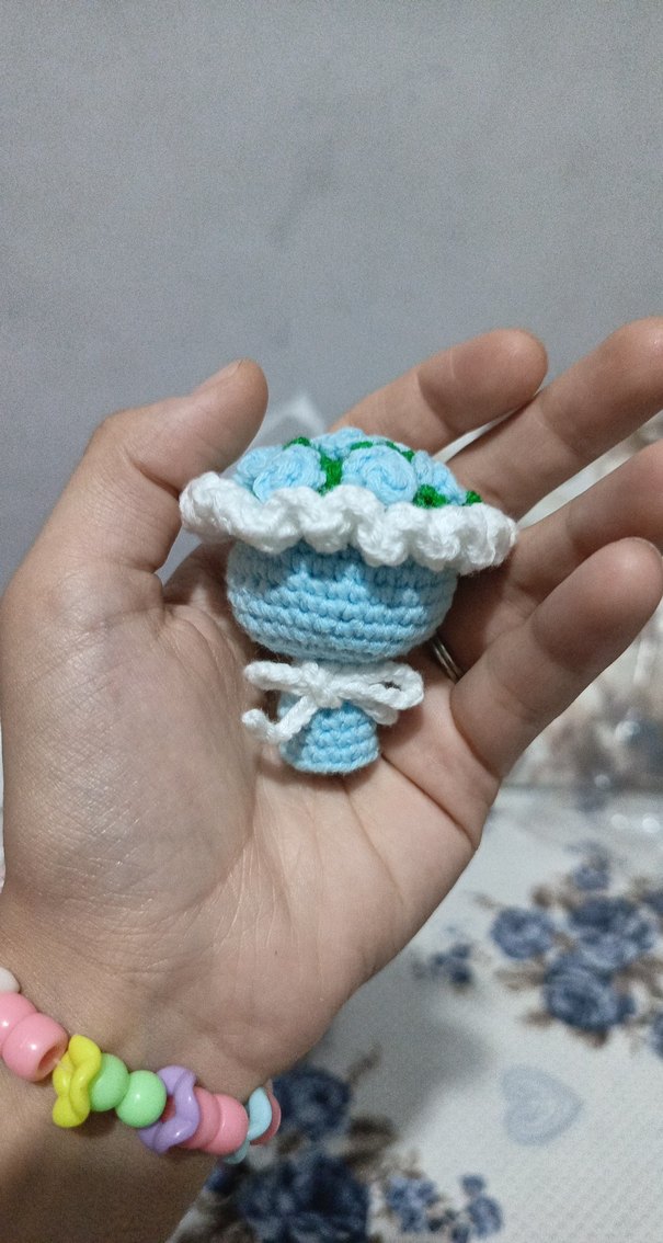 Mavi ağırlıklı, beyaz ve yeşil detaylı renkli örgü bohem tarzda kadın anahtarlık. Anahtarlarınıza sade ve şık bir dokunuş katar.