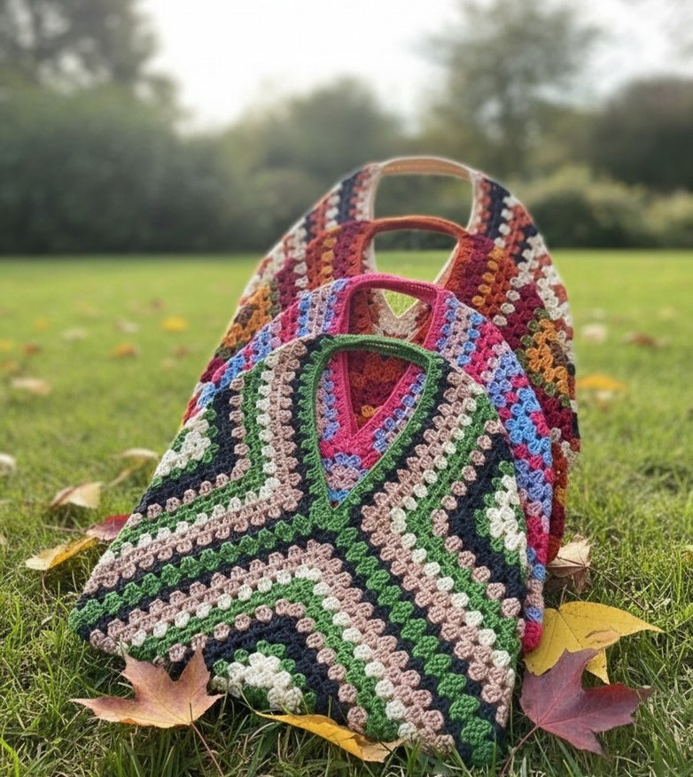 Canlı desenlere sahip renkli örgü çantalar, bohem tarzıyla açık hava kullanımı için uygundur. sipariş üzerine yapıyorum renk ebat tercihi sizin istenilen renkte ve ebatta yapabilirim
