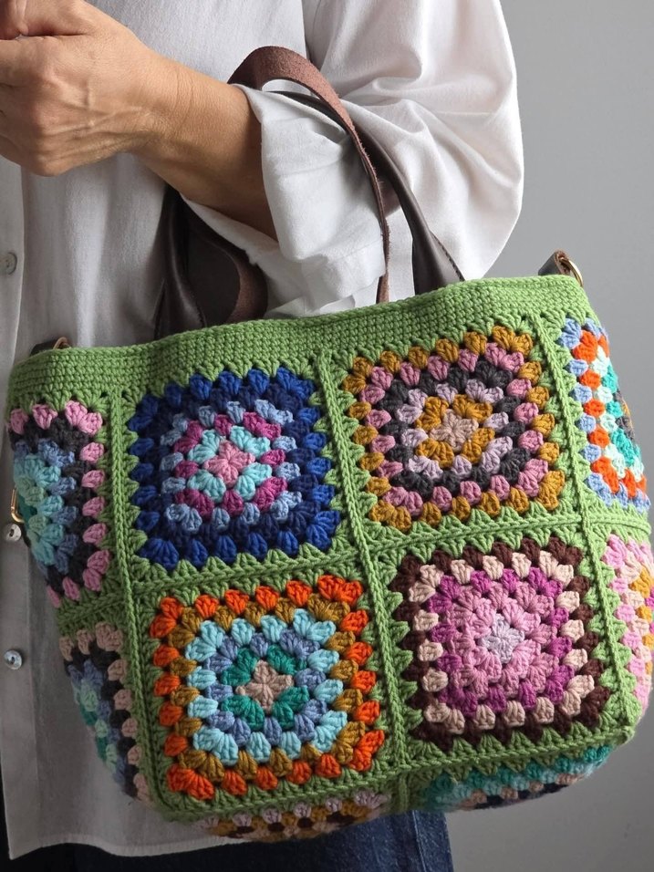 Canlı renklerle örülmüş, desenli bohem tarzda kadın çantası. Deri saplarıyla günlük kullanıma uygundur sipariş üzerine yapıyorum renklerde ve ebatda değişiklik yapabiliriz.