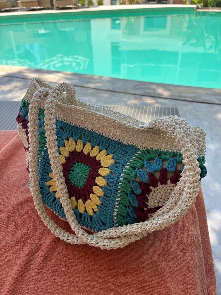 Bohem tarzda, renkli örgü desenli kadın çantası. Yumuşak örme kumaş ve canlı renklerle günlük kullanıma uygundur. Ben plaj çantası olarak da kullanıyorum. Sipariş üzerine yapılıyor. Sipariş vermek isterseniz iletişime geçebilirsiniz