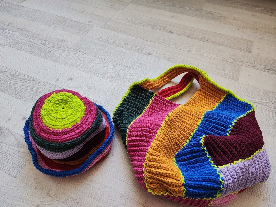 Renkli Örgü Bohem Kadın Çanta ve sapka