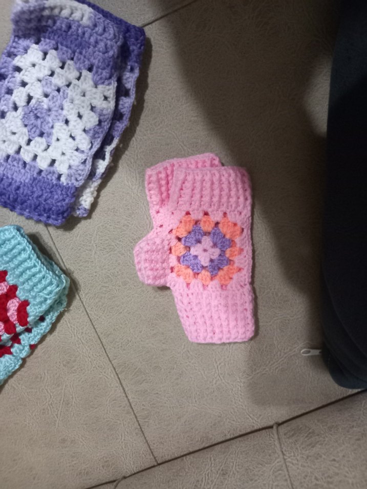 Renkli, pastel tonlarda örgü kadın eldiveni, bohem tarzda rahat ve retro bir görünüm sunar.