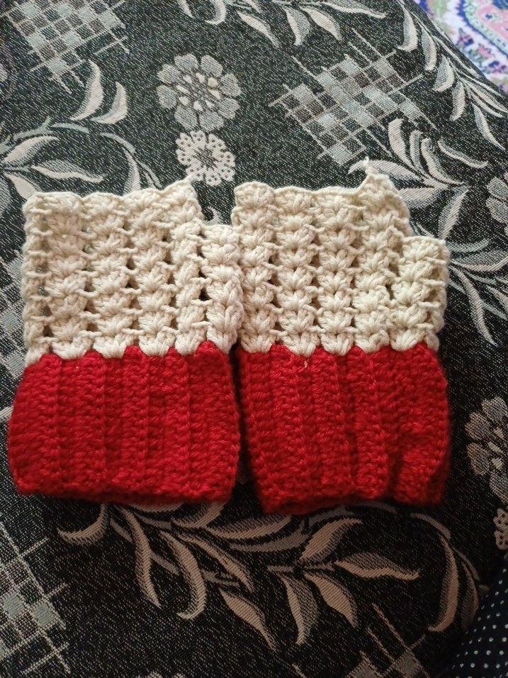 Renkli, örgü yapıda bohem tarzda kadın eldivenleri. Krem ve kırmızı renklerin birleşimiyle sıcak ve rahat bir kullanım sunar.