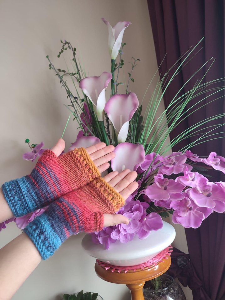 Renkli, örgü bohem tarzda kadın eldiveni. Sıcak tutan, rahat ve retro esintili tasarım.