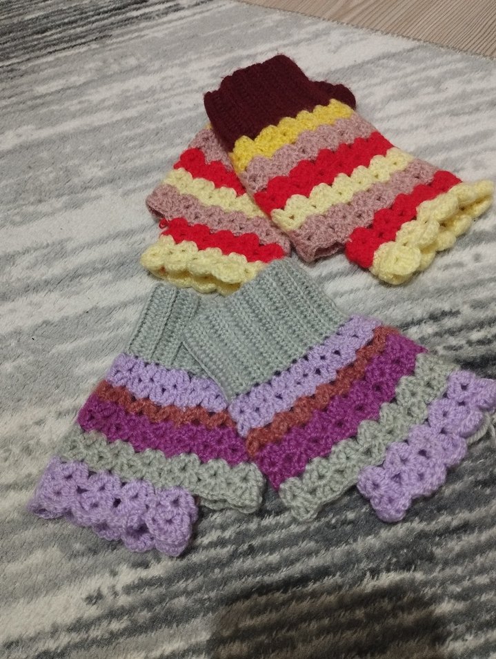 Renkli, örgü bohem tarzda kadın eldivenleri. Rahat ve retro-hippi havası katan detaylara sahip.