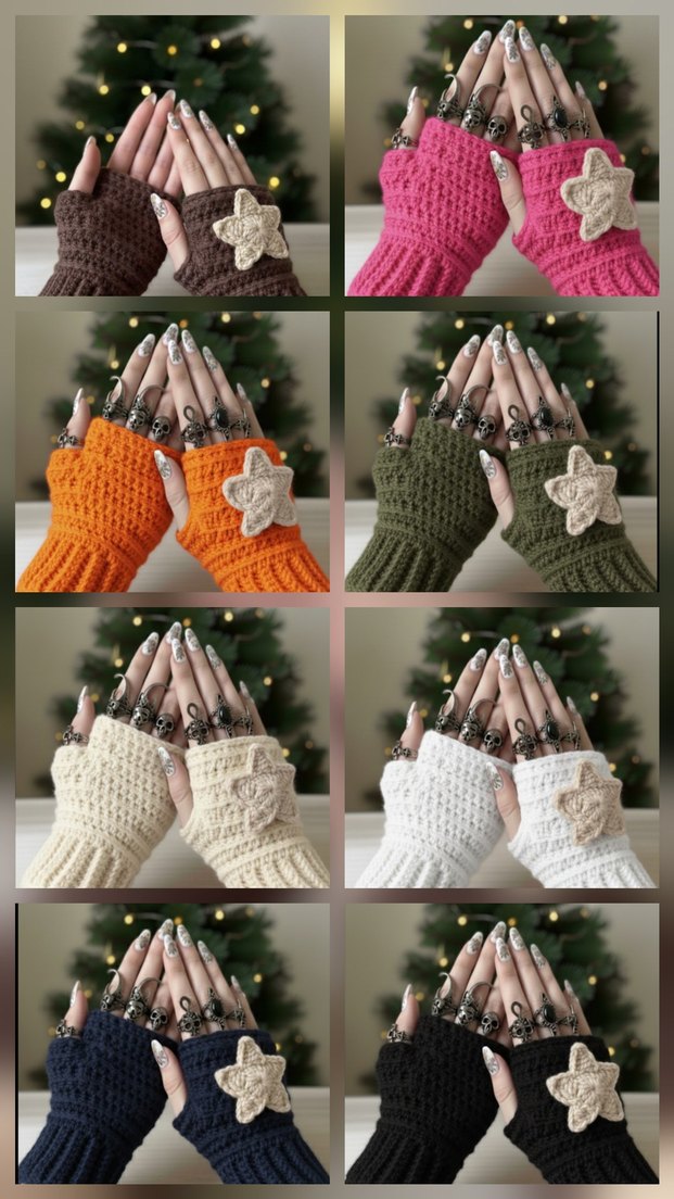 GÖRSEL BANA AİTTİR ✔️✨️ İLAN AÇIYORUM ✔️✨️ istediğiniz rengi belirtiniz ✔️ Renklerde 1,2 tık ton değişebiliyor Farklı açık renklerde, örgü ve yıldız detaylı bohem tarz kadın eldivenleri. Sıcak ve retro bir görünüm sunar.