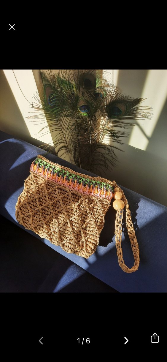 Renkli örgü detaylara sahip bohem tarzda, bilek askılı ve ahşap boncuklu kadın portföy çanta. 25 cm en 20 cm boy ebatli, ahsap boncuk detayli, file desenli, cift kat iple örülmüştür, iç hacmi geniş #cluch #çanta #örgü #fermuar #elemeği #elörgüsü #kağıt #kağıtip