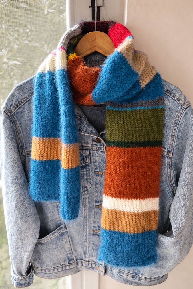Bu renkli örgü şal, yumuşak ve rahat dokusuyla bohem tarzı yansıtır. Canlı renklerin birleşimiyle retro ve hippie havası yaratır.