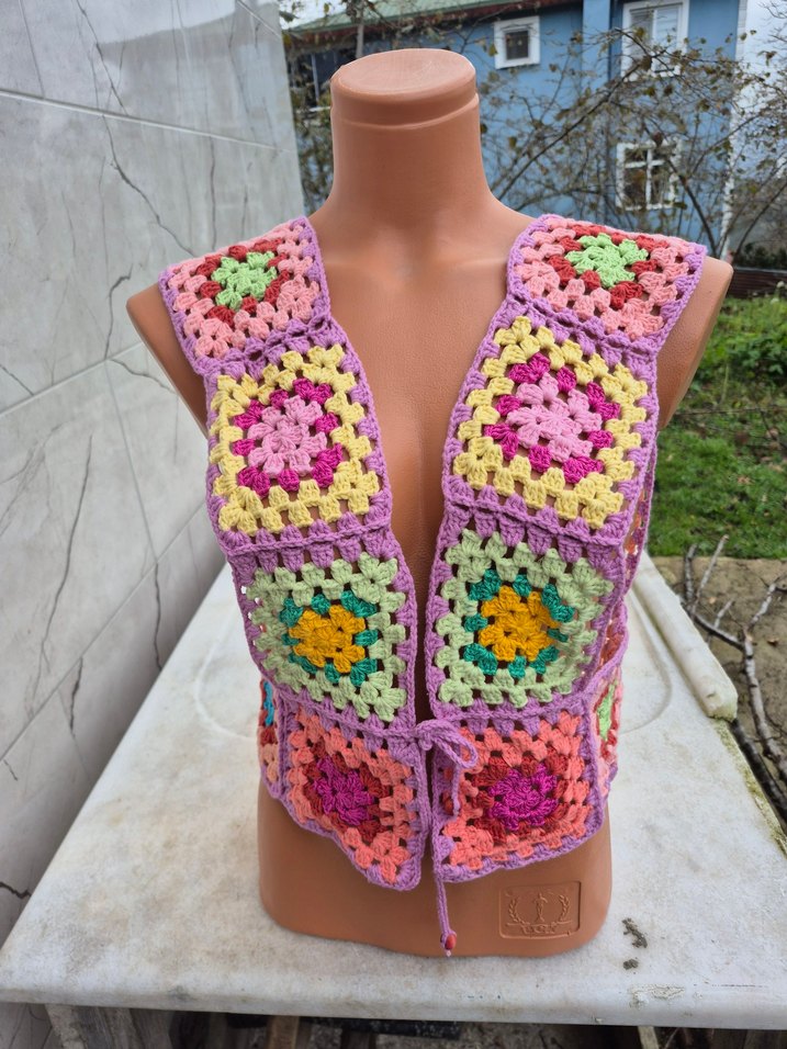 Renkli Örgü Bohem Kadın Yelek