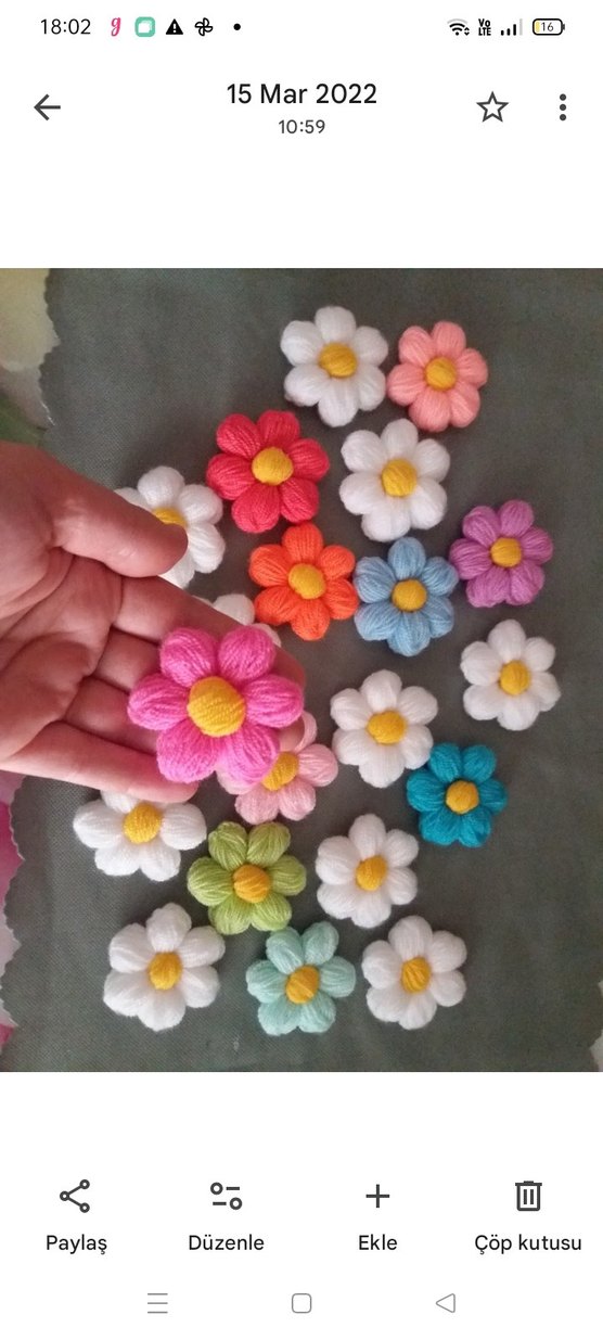 renkli örgü çiçekler hırka süslemede kullanılır istenilen adet ve renkte yapılır
