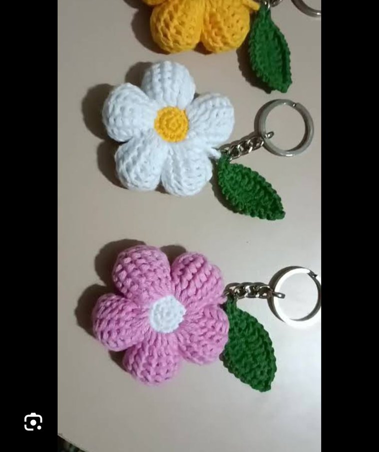 Renkli örgü çiçeklerden oluşan anahtarlık seti, yeşil yaprak detaylıdır ve bohem tarzına uygundur. Her parça yumuşak, el yapımı çiçek tasarımına sahiptir isteğe göre farklı renkte yapılır