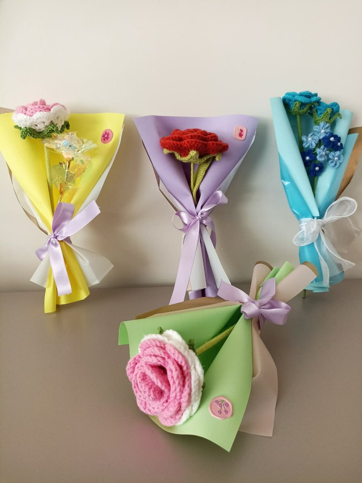 Renkli Örgü Çiçek Buketleri Hediyelik