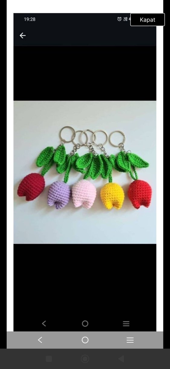 Yeşil yapraklı, örgü renkli çiçek anahtarlıklar, rahat ve bohem tarz sunar. Anahtarlarınıza retro bir dokunuş katmak için ideal.