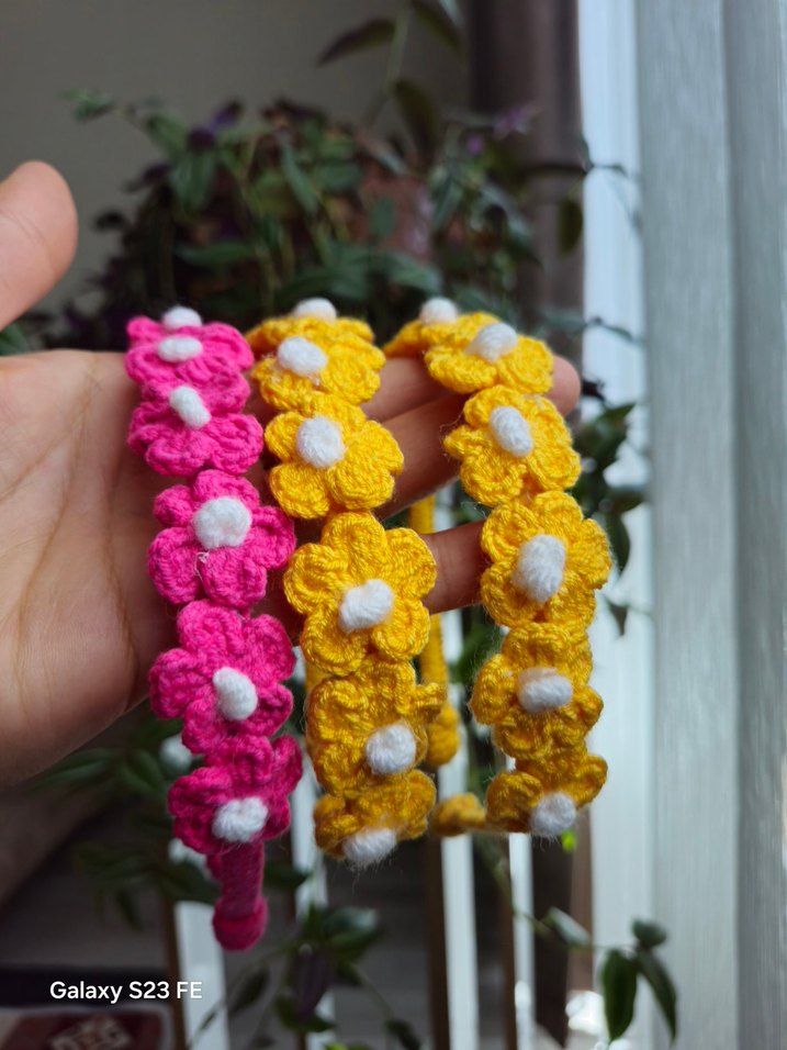 Renkli Örgü Çiçekli Çocuk Saç Bantları