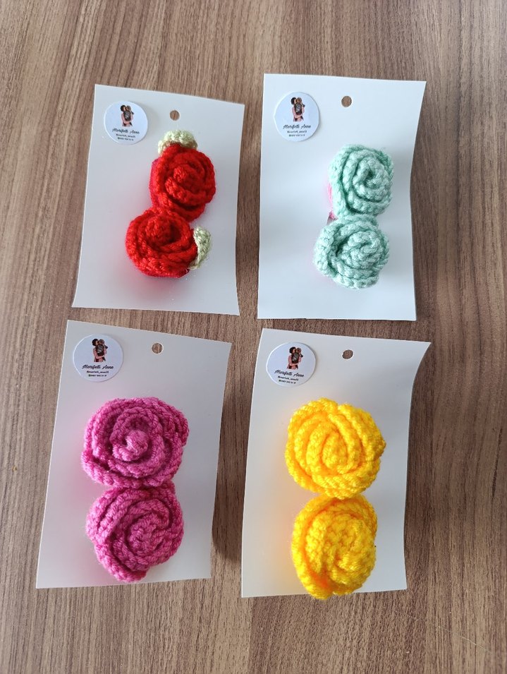 Renkli Örgü Çiçekli Çocuk Saç Tokaları