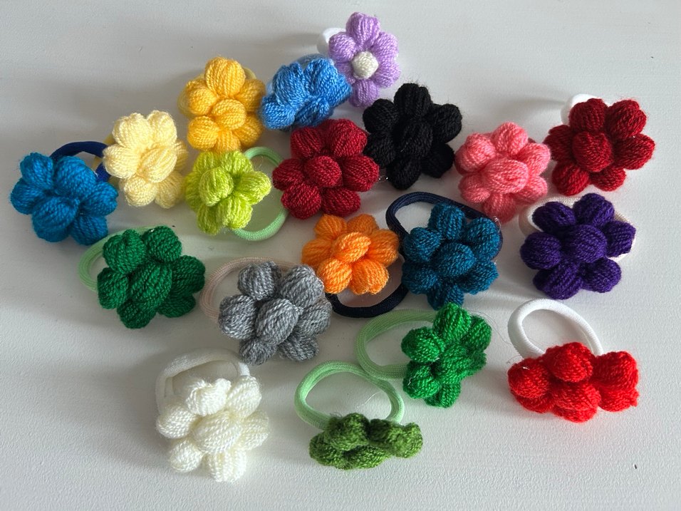 Renkli örgü çiçek şeklinde çocuk saç tokaları, bohem ve retro tarzda. Canlı renkleriyle neşeli bir görünüm sağlar. Elemeği, özenle örüldü. 10 adet karışık renkte gönderilecektir. İstediğiniz renk varsa ayrı ilan açılır. Lastiği çok gevşek değildir, çocuk saçları için ideal.