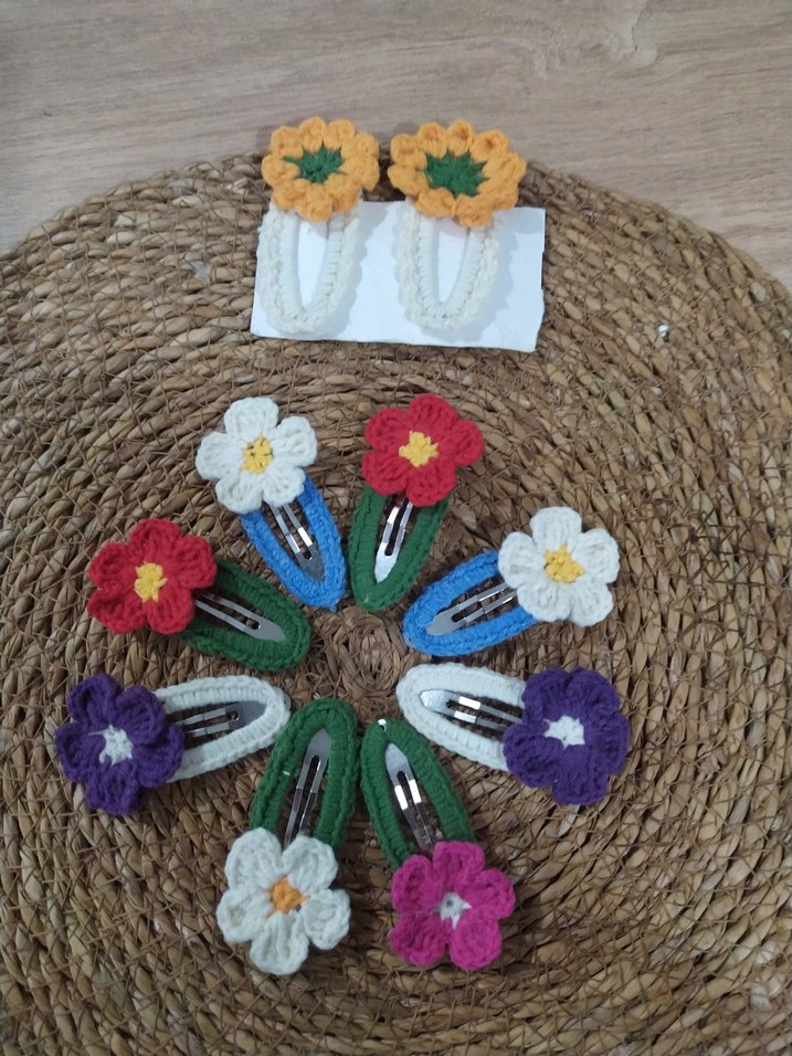 Renkli Örgü Çiçekli Çocuk Toka Seti