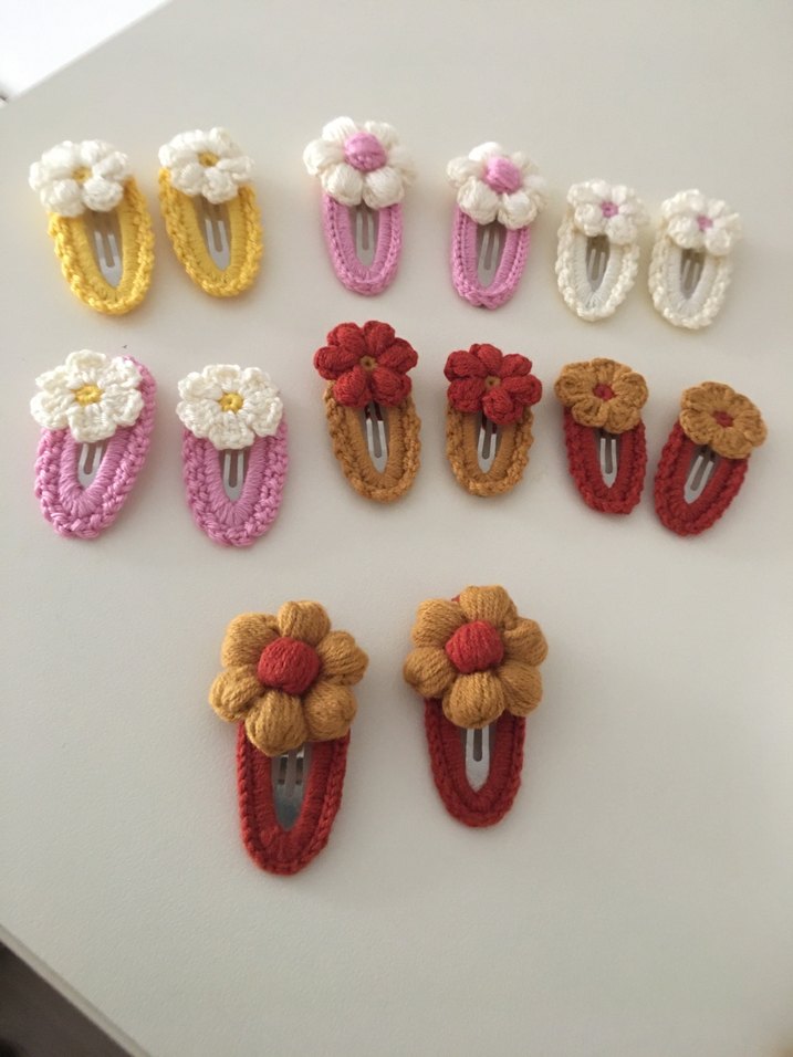 Renkli Örgü Çiçekli Çocuk Toka Seti