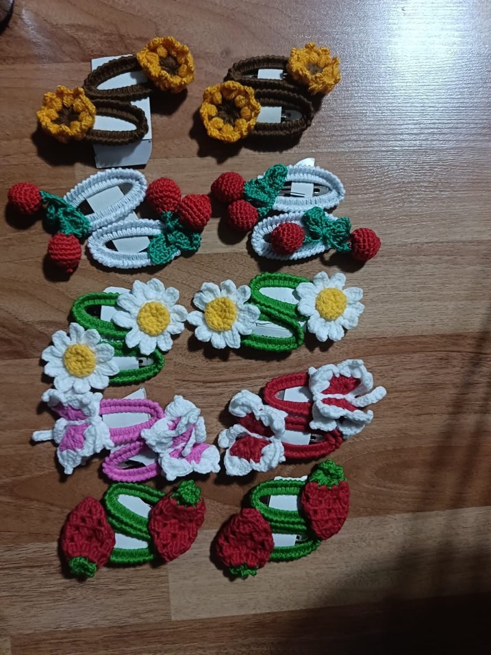 Renkli Örgü Çiçekli Çocuk Toka Seti