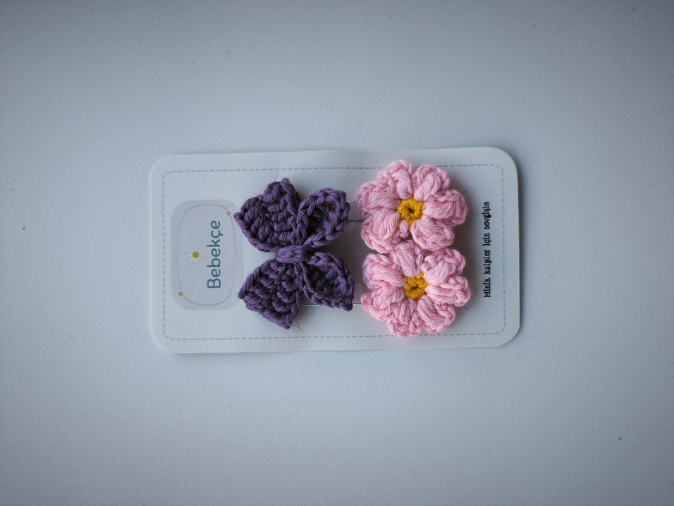 Renkli Örgü Çiçekli Saçsız Bebek Tokası