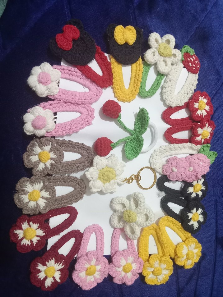 Renkli örgü çiçek ve kiraz desenli çocuk tokaları, bohem tarz için uygun. sipariş alınır ilan açtırın çiftin fiyatıdır.❤️