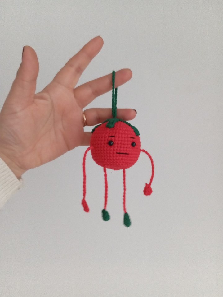 Kırmızı renkli, örgüden yapılmış diş kaşıyıcı ve çıngırak. Sallanan kolları ve asma halkası bulunur. Bebekler için yumuşak ve güvenlidir.