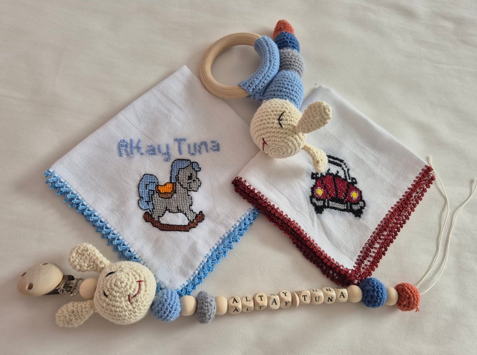 Renkli Örgü Diş Kaşıyıcı ve Çıngırak Seti