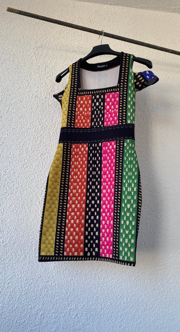 Renkli Örgü Dokulu Kalem Elbise
