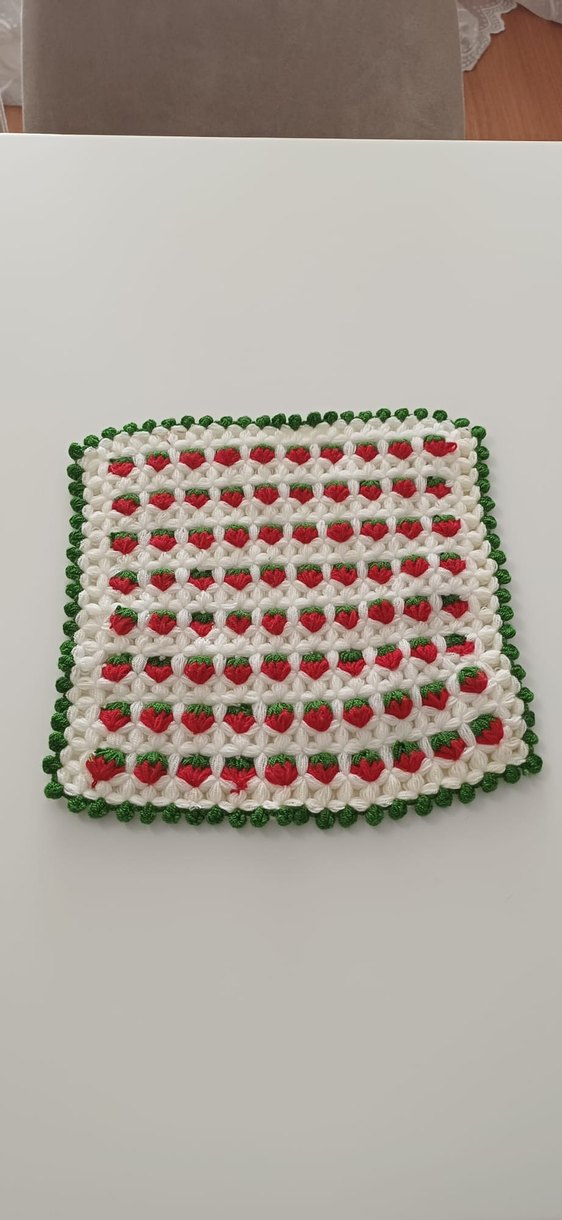 Kırmızı ve yeşil detaylı, dokulu desenli renkli örgü duş süngeri.