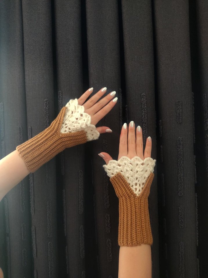 Parmaksız örgü eldiven Renk: Tarçın, beyaz