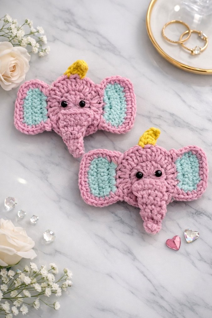 Renkli Örgü Fil Desenli Çocuk Saç Tokası