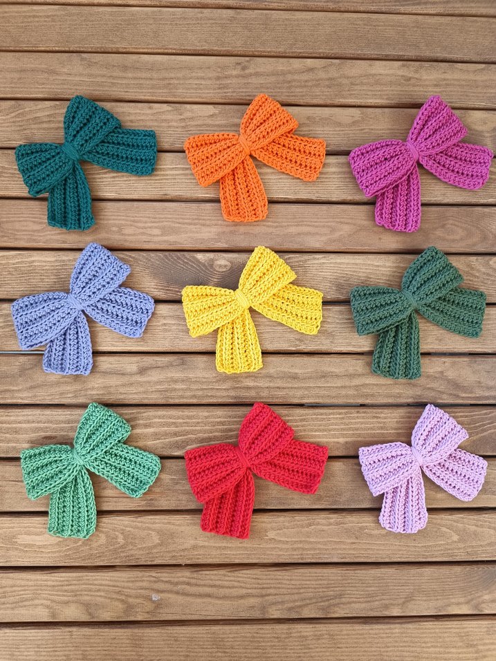 Renkli örgü fiyonk şeklinde saç tokaları istenilen renklerde hazırlanabilir.lastikli toka ve otomatik toka seçenekleri mevcuttur.ilan fiyatı lastikli toka içindir.otomatik toka aparatı için +5 eklenir.
