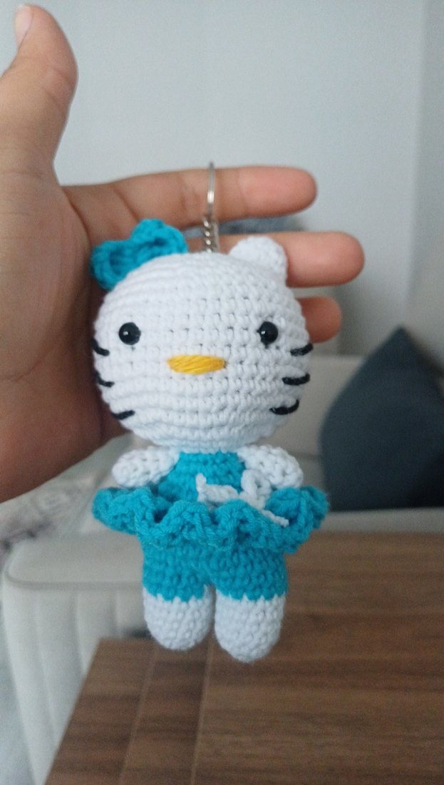 Renkli örgüden yapılmış, mavi tonlarda sade ve normcore tarzda kadın anahtarlık. Anahtarlarınıza hoş bir dokunuş katar.