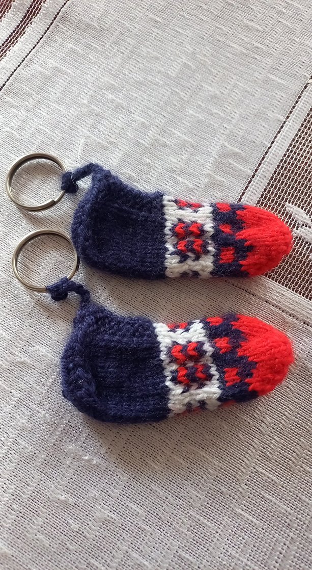 Renkli desenlere sahip örgü anahtarlıklar, rahat ve bohem bir tarzı yansıtıyor. Çok renkli, geleneksel tasarımlı ve retro havasında. 2 adet vardır. Adet fiyatı 50 TL'dir.