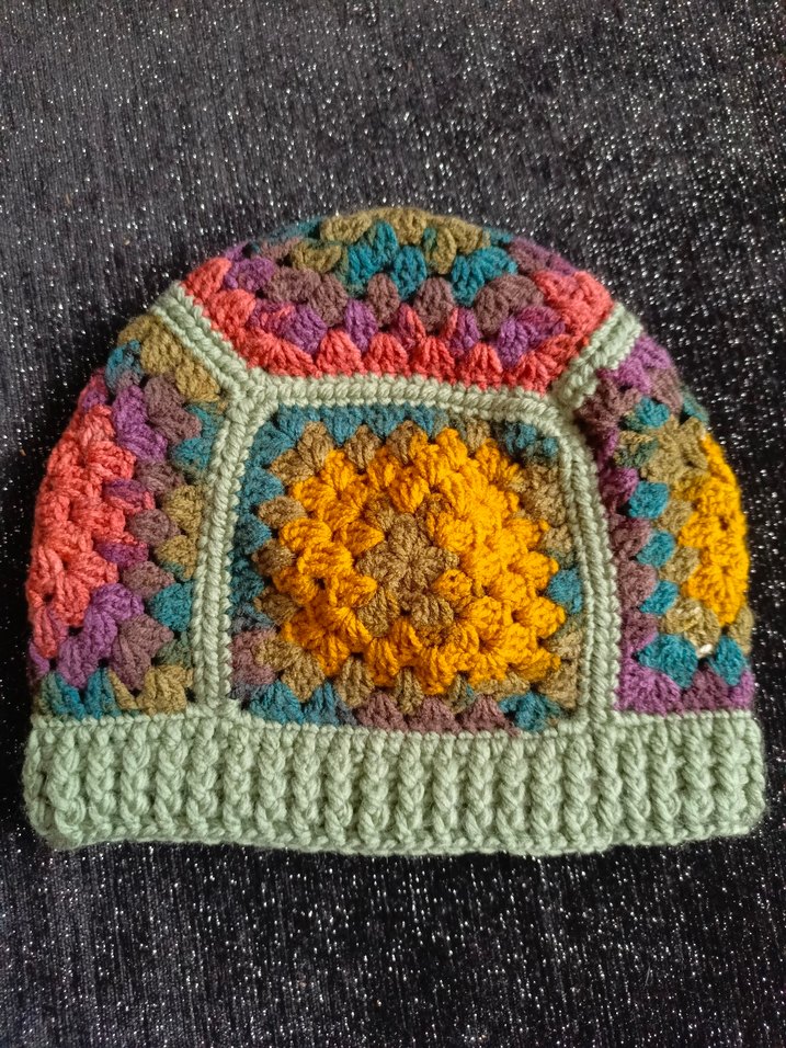Renkli, örgü kadın bere; bohem ve retro tarzıyla sıcak, rahat bir görünüm sunar. Canlı çok renkli deseniyle el yapımı hissi verir.