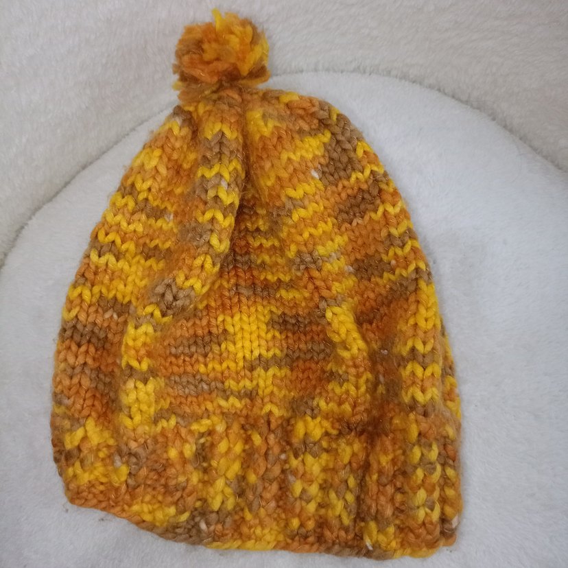 Renkli ipten örülmüş, bohem tarzda kadın bere. Üstünde ponpon detaylı, retro ve hippie görünüme uygun sıcak bir model.
