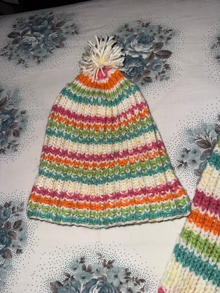 Renkli çizgili, örgü kadın bere, üstünde ponpon ile bohem ve retro tarzlara uygun, rahat bir görünüm sunar. HER RENK ÖRÜLÜR MÜŞTERİYE AİTTİR!