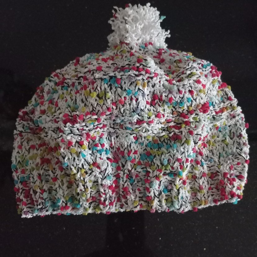Yumuşak örgüden yapılmış, üzerinde ponpon bulunan renkli kadın bere. Bohem ve retro tarzlara uygun, rahat bir aksesuar.