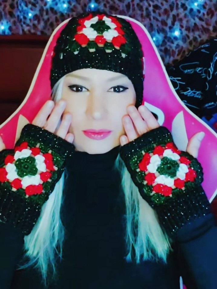 Renkli Örgü Kadın Bere Eldiveni Kupa Bardak set