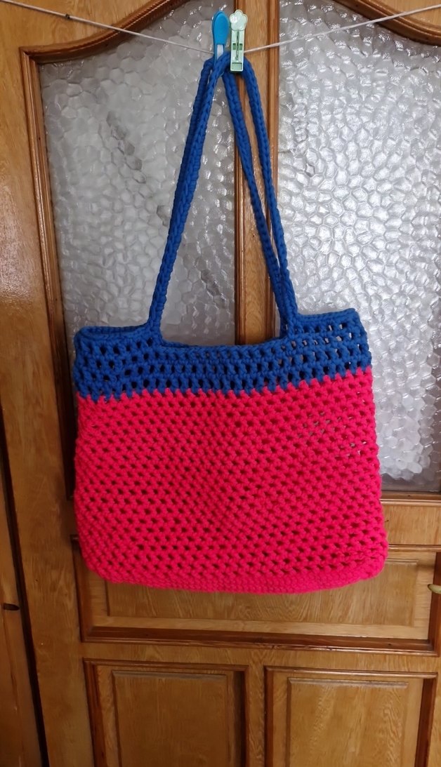 Yumuşak örgü dokusuyla, uzun saplı renkli bohem tarzda kadın çantası, günlük kullanıma uygun.